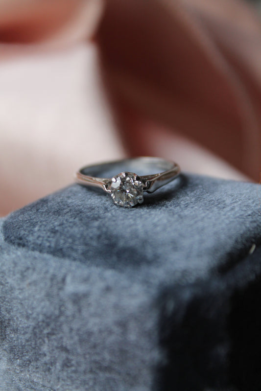 Anillo solitario europeo, hecho a mano, de oro blanco y brillante central "old european cut"