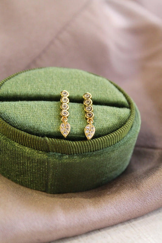 Aros colgantes, plata 925 enchapados en oro y zirconitas.