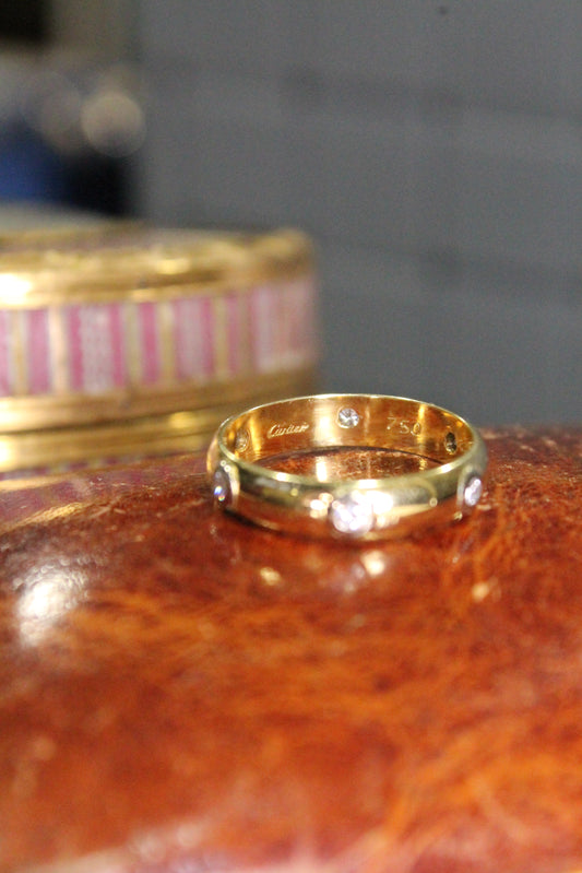 Anillo europeo modelo sin fin, Cartier original. Oro amarillo y brillantes