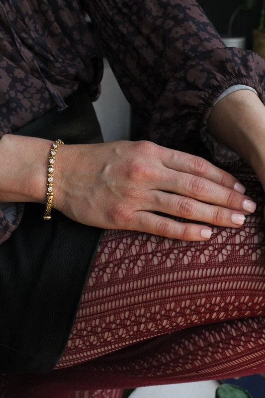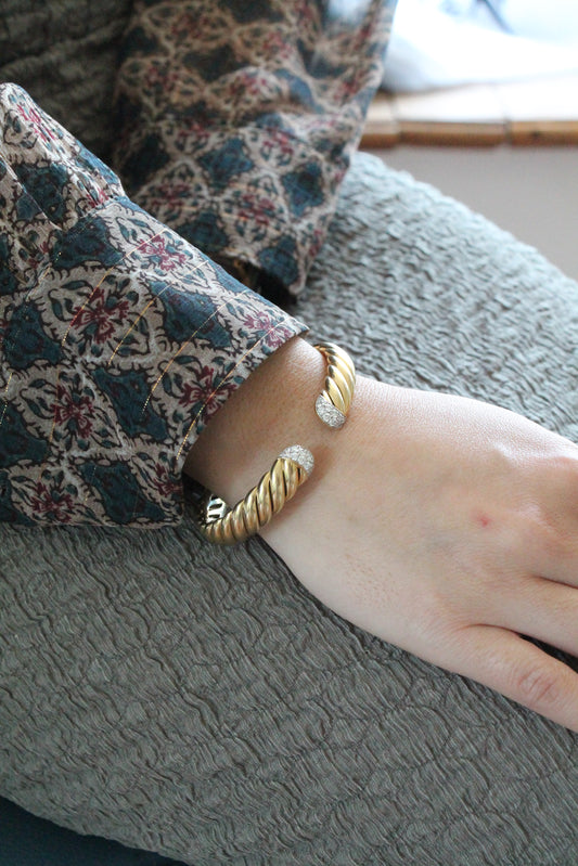 Esclava flexible y trenzada, origen europeo, oro amarillo y brillantes.