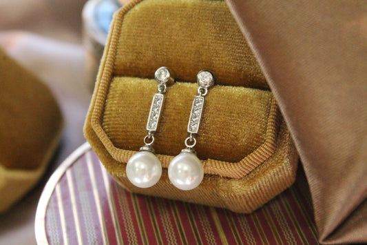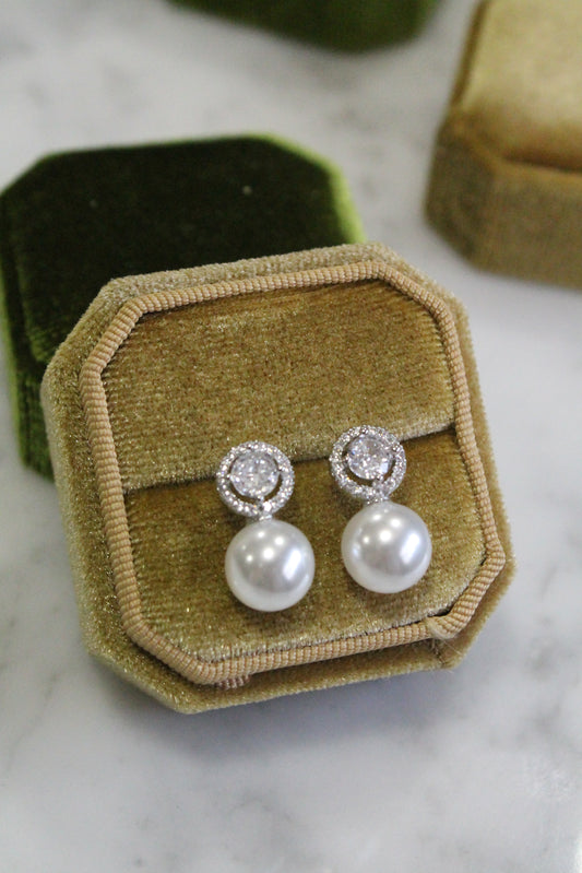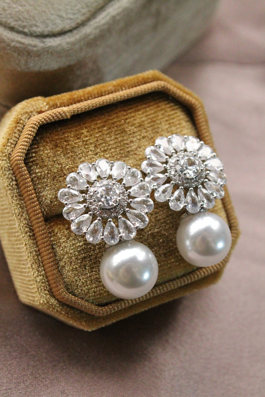Aros colgantes, plata 925, perlas sinteticas y zirconitas