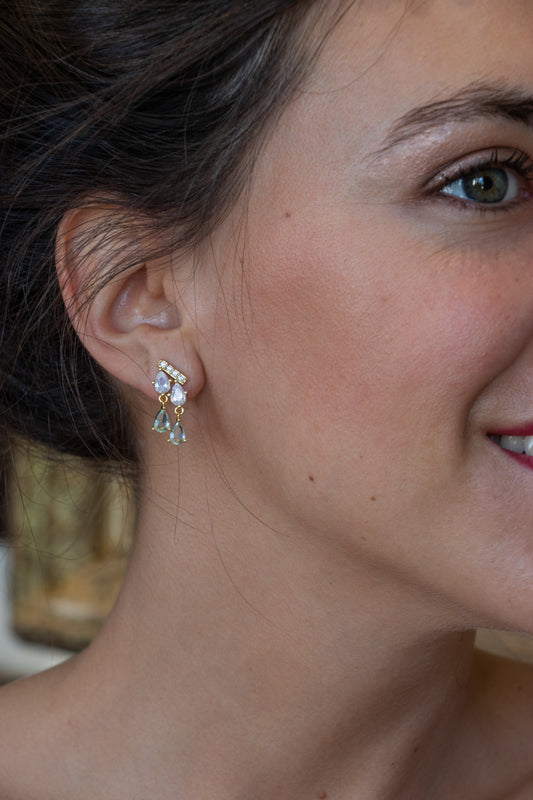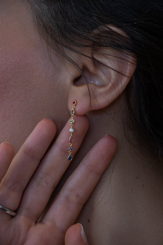 Aros largos figuras, plata 925 con enchapado en oro y zirconitas