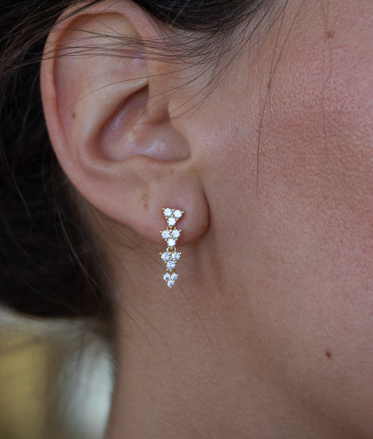 Aros triangulares, plata 925 enchapado en oro y zirconitas
