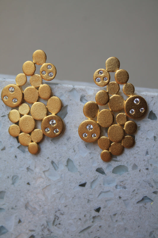 Aros estilo antiguo, plata 925 enchapado en oro y zirconitas