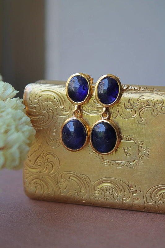 Aros metal plata 925, lapizlázuli enchape de oro y zirconitas