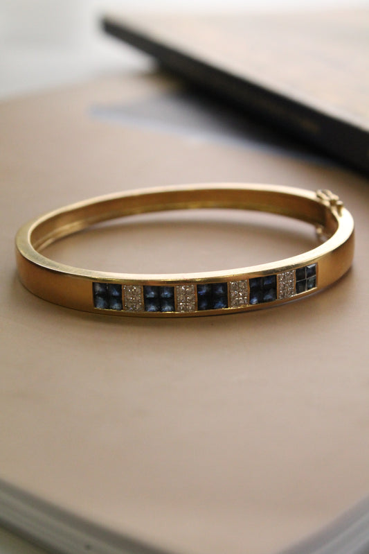 Esclava europea, oro amarillo, zafiros y brillantes.