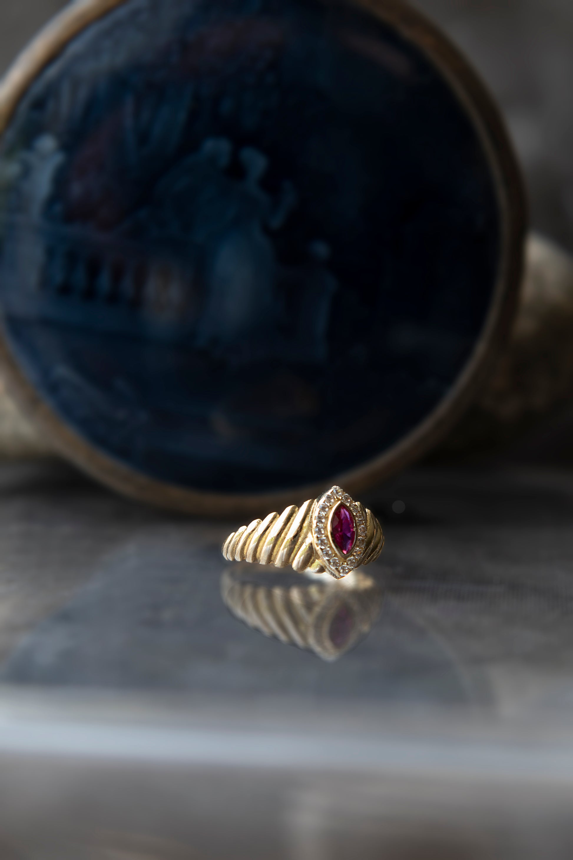 ⬥Piedras: zirconitas incoloras y la central de color rojo.