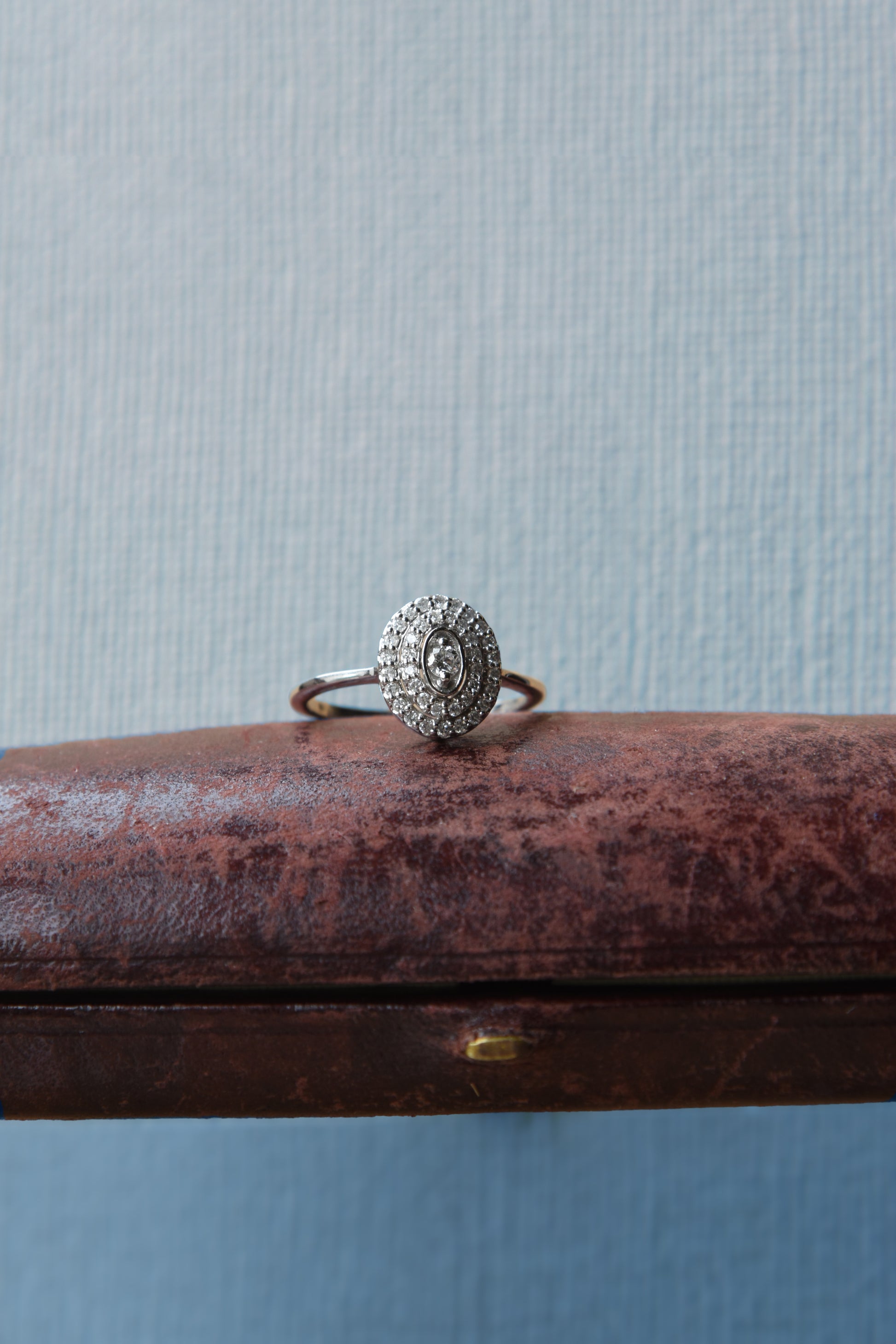 Anillo modelo halo, oro blanco, oro amarillo y brillantes