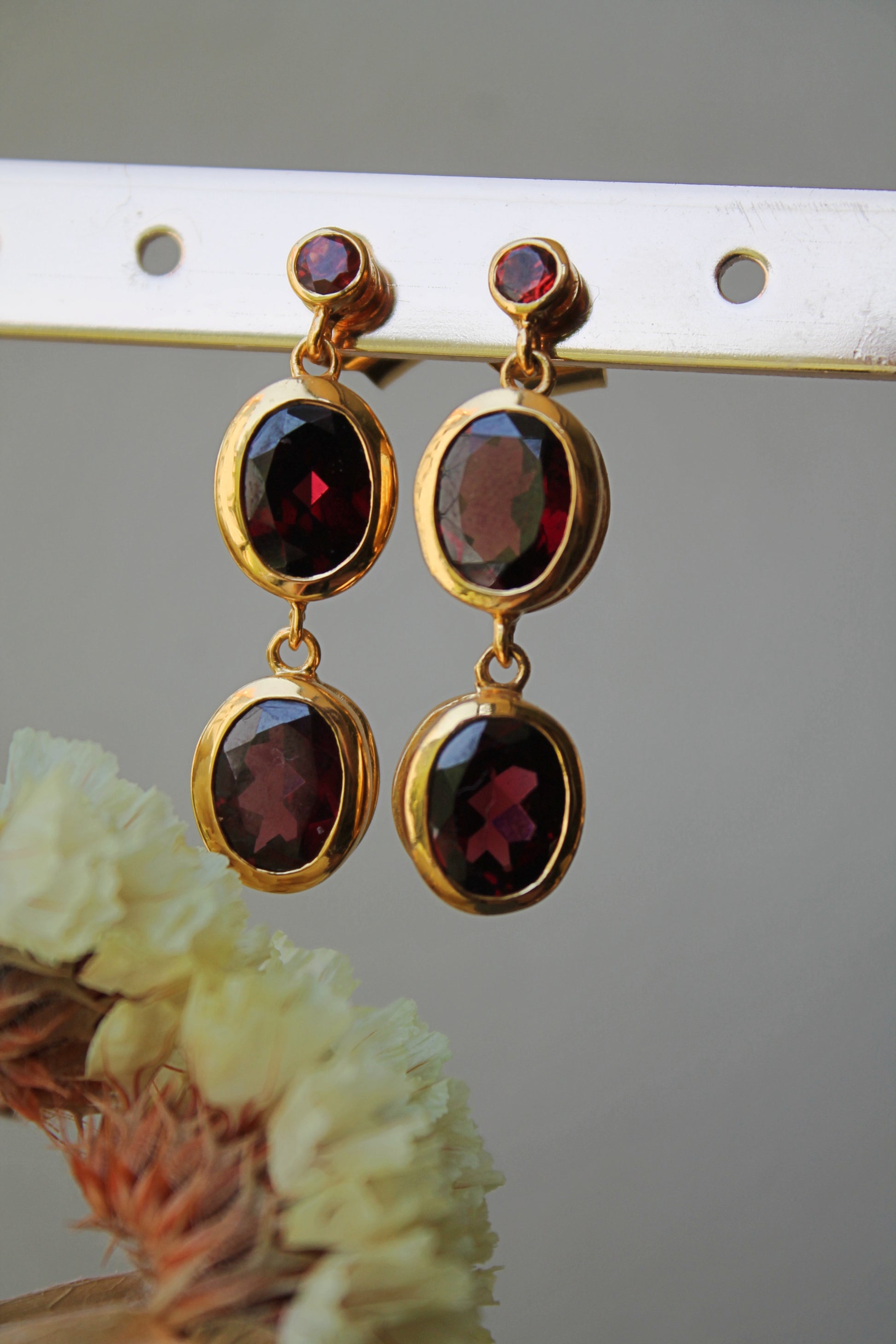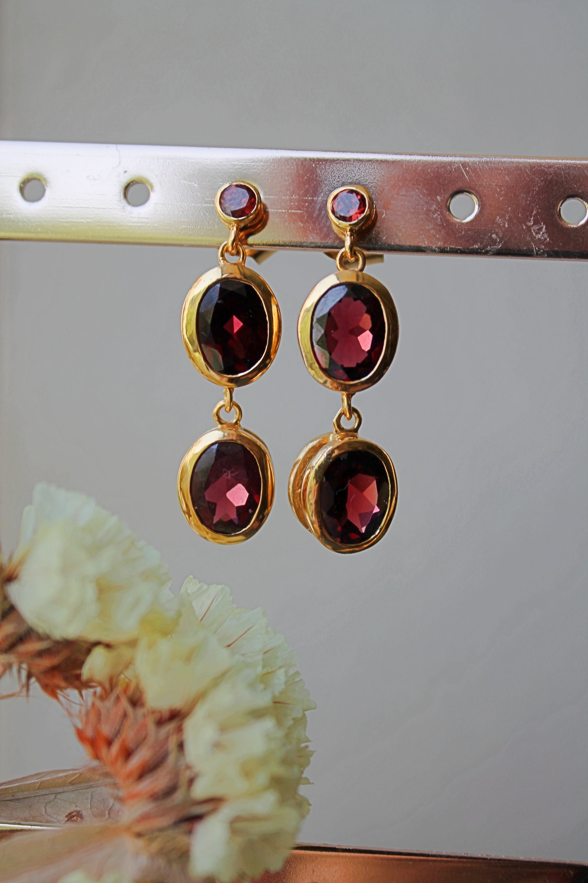 Aros metal plata 925 con enchape de oro y granates almandinos